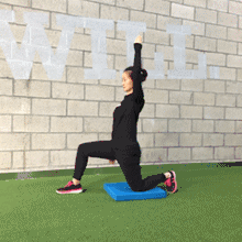 姿势:弓箭步跪姿在垫上,保持躯干中立位,呼气的时候推髋向前到身体最大幅度