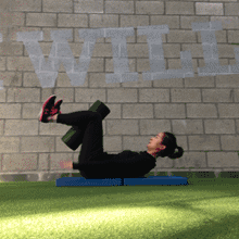 姿势:仰卧位在垫上,双腿加紧泡沫轴保持下肢稳定,上卷胸椎段保持收紧腹部,手臂的摆动增加训练的复杂程度